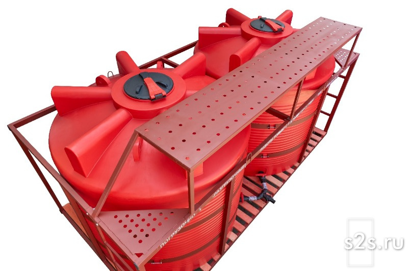▶ Ёмкости оснащены откидными крышками с дыхательным клапаном и химостойкими двухдюймовыми кранами