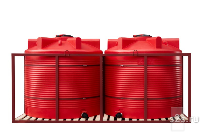 ▶ Каждая емкость в обрешетке фиксируется стяжными кольцами